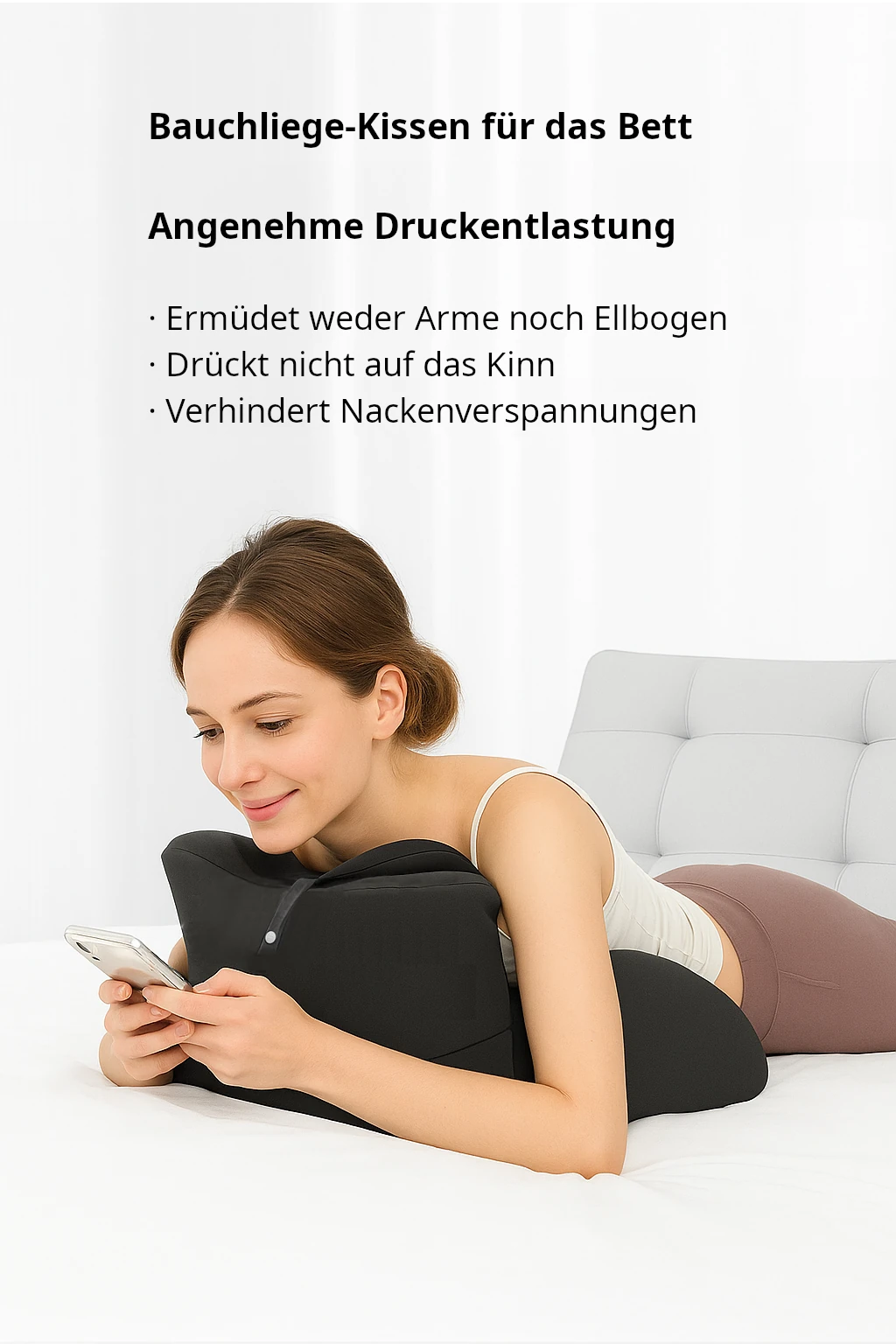 Produktbeschreibung: Entdecke unser ergonomisches Memory-Kissen – entwickelt für höchsten Komfort und vielseitige Einsatzmöglichkeiten. Geeignet für: Erwachsene und Jugendliche Anwendung: Ideal als Gesichtskissen beim Smartphone-Gebrauch, zum entspannten Lesen oder Streamen im Liegen. Zudem vielseitig nutzbar als komfortables Beinstützkissen, Rückenstütze auf der Couch oder als multifunktionales Kissen für intime Momente. Weicher Memory-Schaum passt sich optimal der Körperform an und sorgt für perfekten Halt in jeder Position.